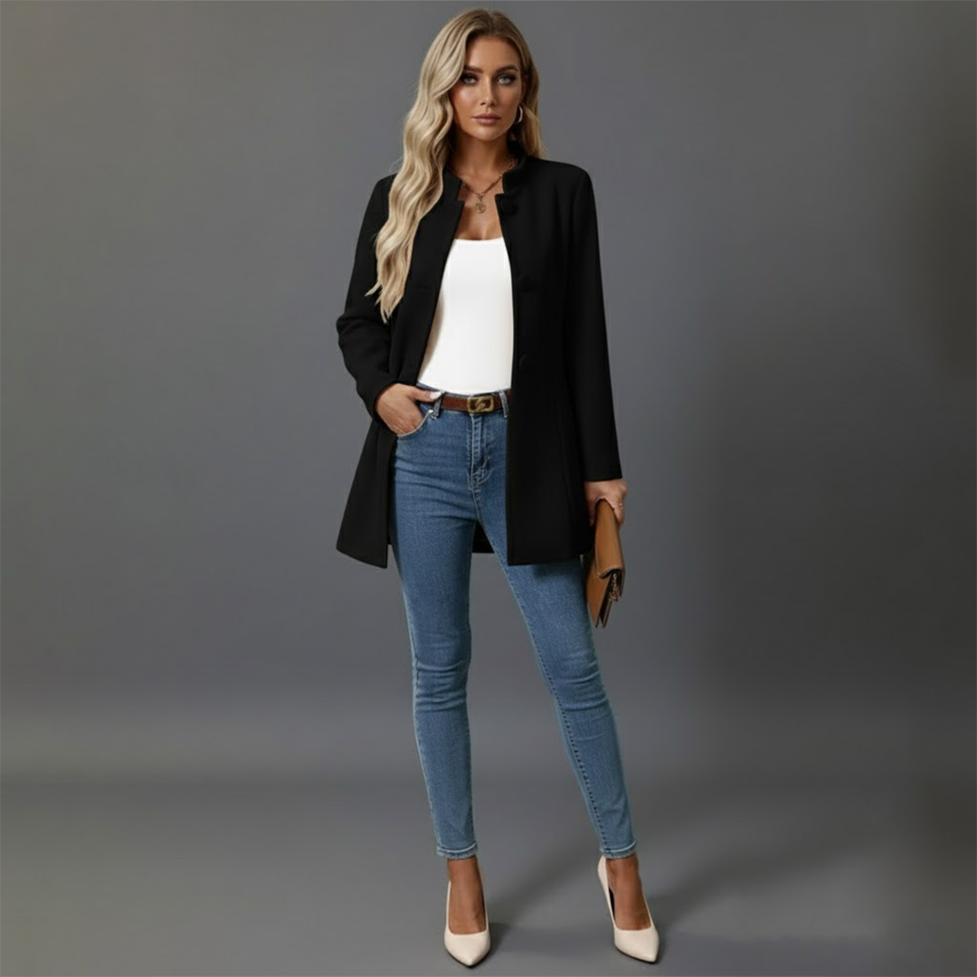 Der Lara Damen-Wintermantel mit Knöpfen vereint klassische Raffinesse mit gemütlichem Tragekomfort. Mit seinem langen, strukturierten Schnitt und den stilvollen Knopfdetails ist er die perfekte Wahl für kalte Tage. Ob beim Stadtbummel, im Büro oder bei besonderen Anlässen – dieser Mantel verleiht jedem Outfit eine elegante Note und hält dich dabei angenehm warm.